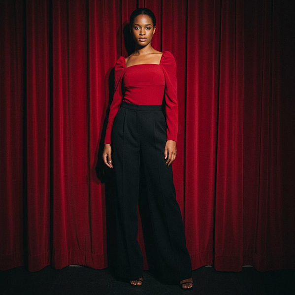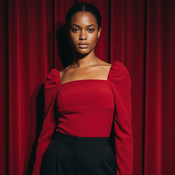 Блуза с вырезом "каре"прилегающего силуэта. Модель с длинным рукавом-фонарик со сборкой на плечах, оформленной с помощью эластичной резинки. На спинке застежка на потайную тесьму "молния".Изделие выполнено из тонкой костюмной ткани.