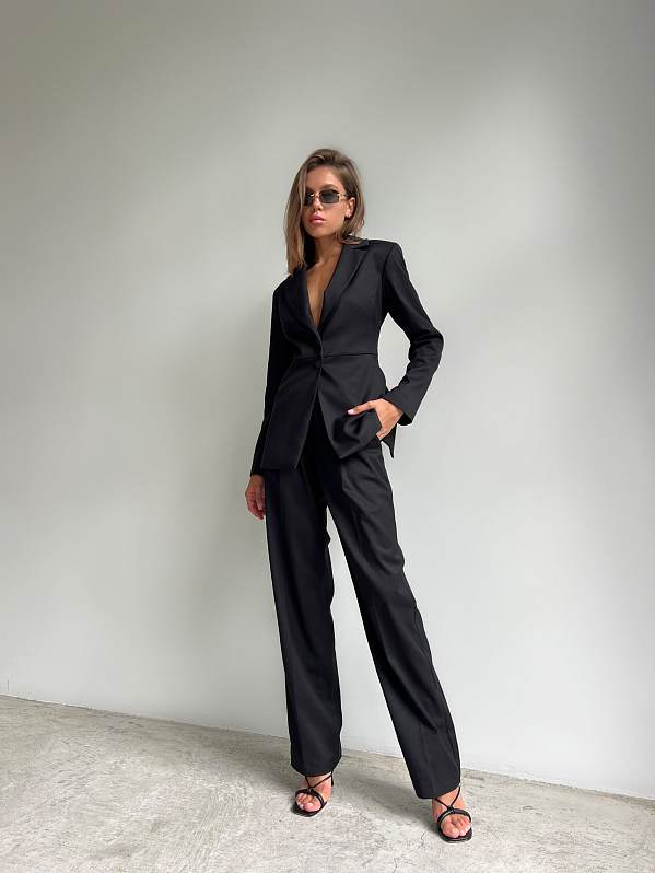 Брюки прямого силуэта со стрелками, с притачным поясом. Модель с боковыми карманами, спереди застёжка на тесьму "молния" и пуговицу. Изделие выполнено из костюмной ткани со стрейч-эффектом, которая хорошо держит форму.