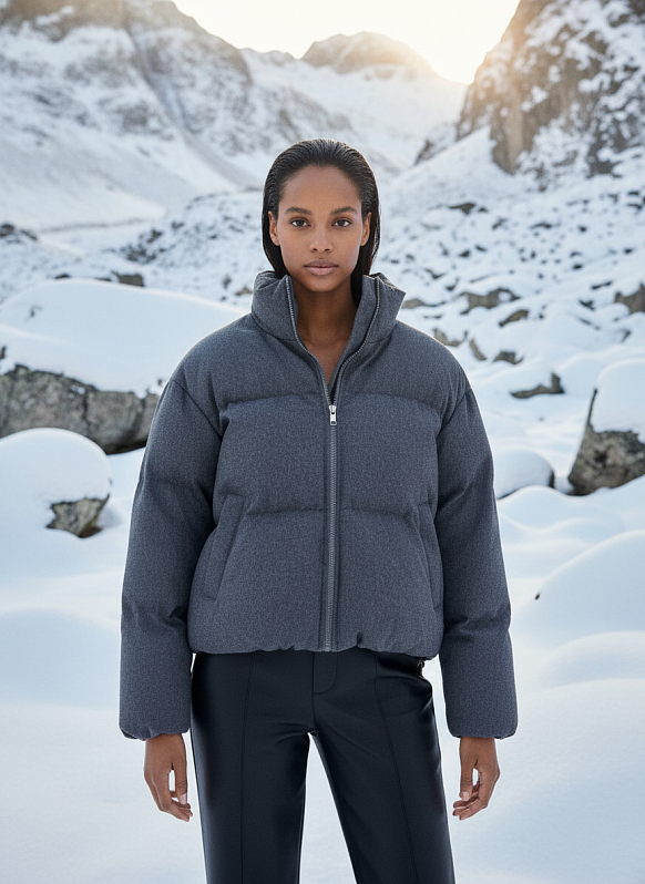 Утепленная стеганая куртка с воротником-стойкой. Центральная застёжка на молнию. Модель со спущенной линией плеча имеет длинный втачной рукав. Низ рукава и низ изделия оформлен сборкой за счет эластичной резинки. Куртка выполнена из тонкой шерстяной ткани с ветрозащитным слоем на вискозной подкладке, внутри современный утеплитель «Холл-Софт-200», такое сочетание материалов способно обеспечить высокий уровень комфорта и сохранность тепла.