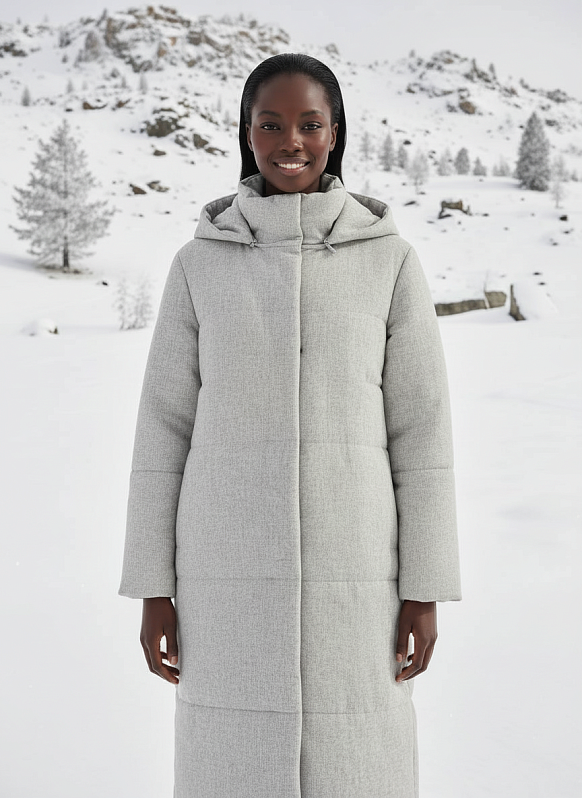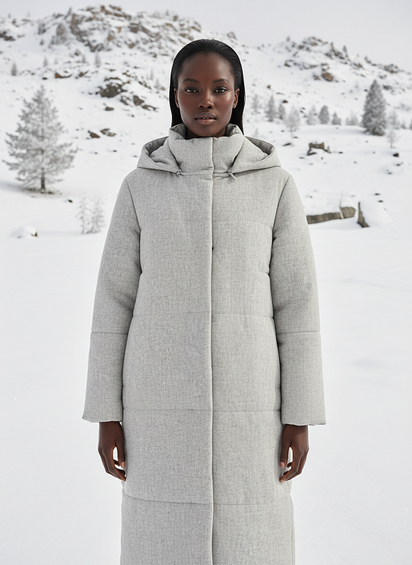 Пальто стеганое на утеплителе. Модель с отстегивающимся капюшоном и карманами в боковых швах. Центральная застёжка на потайные кнопки. Модель имеет длинный втачной рукав. Изделие выполнено из ткани с содержанием шерсти на вискозной подкладке, внутри современный утеплитель «Холл-Софт 300» - такое сочетание материалов способно обеспечить высокий уровень комфорта и сохранность тепла.
