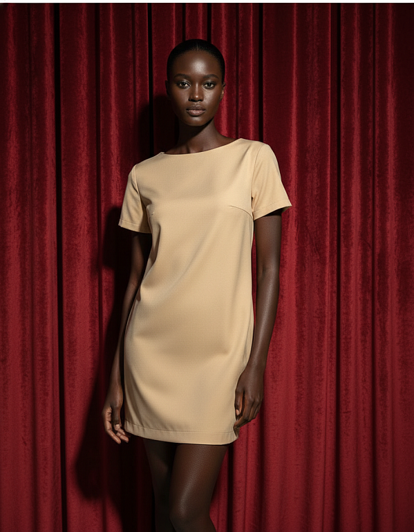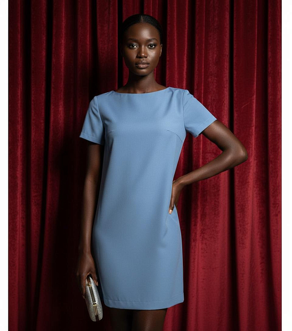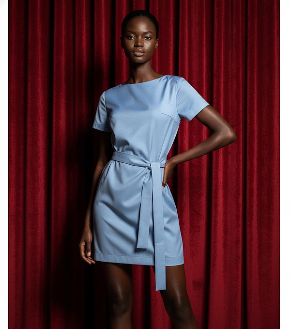 Платье мини прямого силуэта. Модель имеет круглый вырез горловины и короткий втачной рукав. В комплект к платью входит декоративный съемный пояс. Изделие выполнено из тонкой костюмной ткани, что обеспечивает удобство и комфорт при носке.