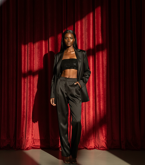 Топ бандо с пайетками на подкладке. По спинке эластичная сборка, выполненная с помощью резиновой нити в несколько рядов. Изделие выполнено из капрона с пайетками и вискозной подкладочной ткани.